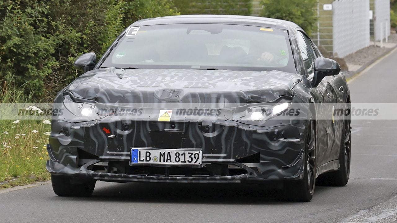 Más de medio año el que ha pasado entre el último avistamiento y este nuevo, y parece que no ha pasado el tiempo. La coraza extra que cubre toda la carrocería de esta imponente berlina deportiva se mantiene intacta, apenas se siguen viendo los faros y la cámara delantera que irá instalada en el centro del panel de la parrilla. Una cubierta que se puede ver en los laterales del capó y que no solo añade peso, sino que desvirtúa los valores aerodinámicos.